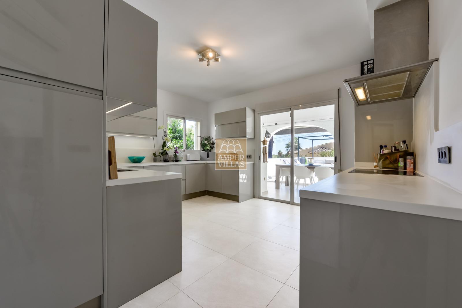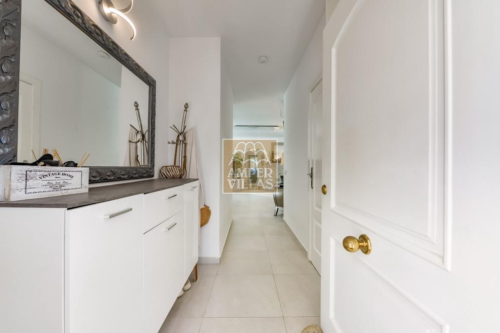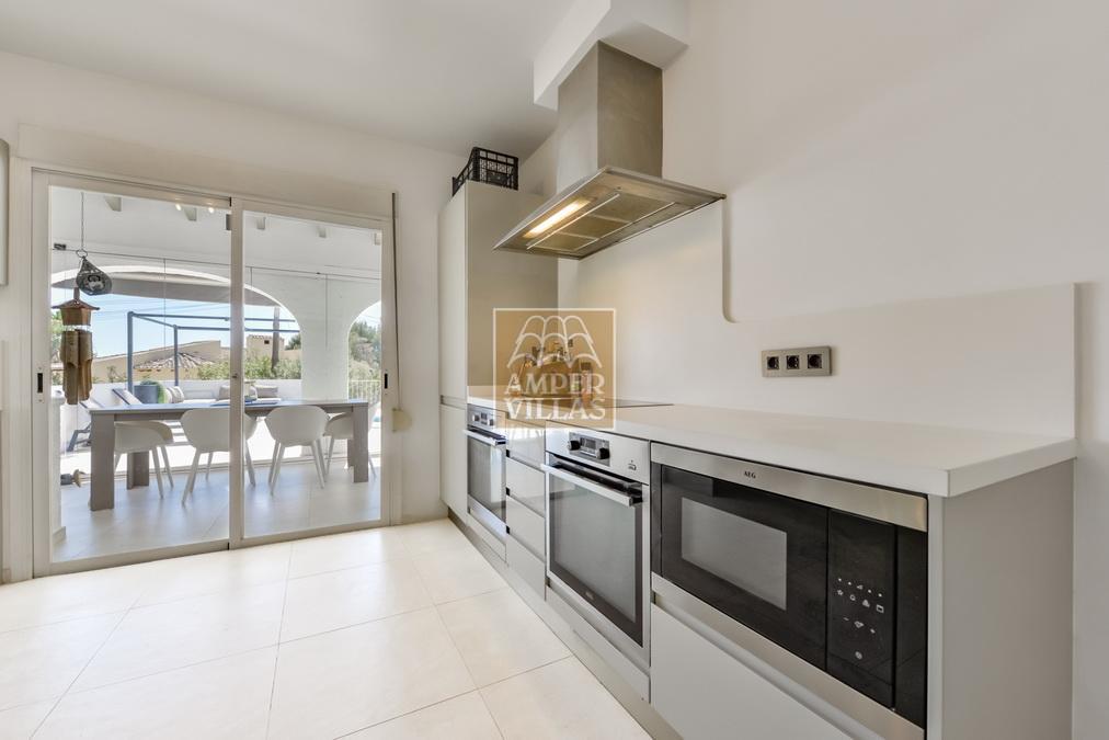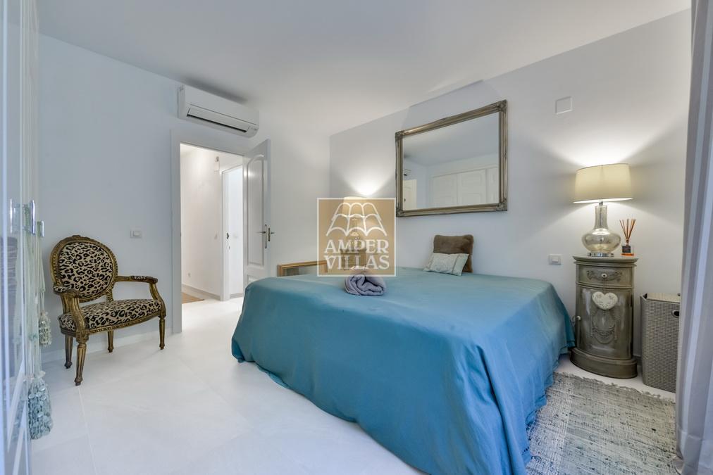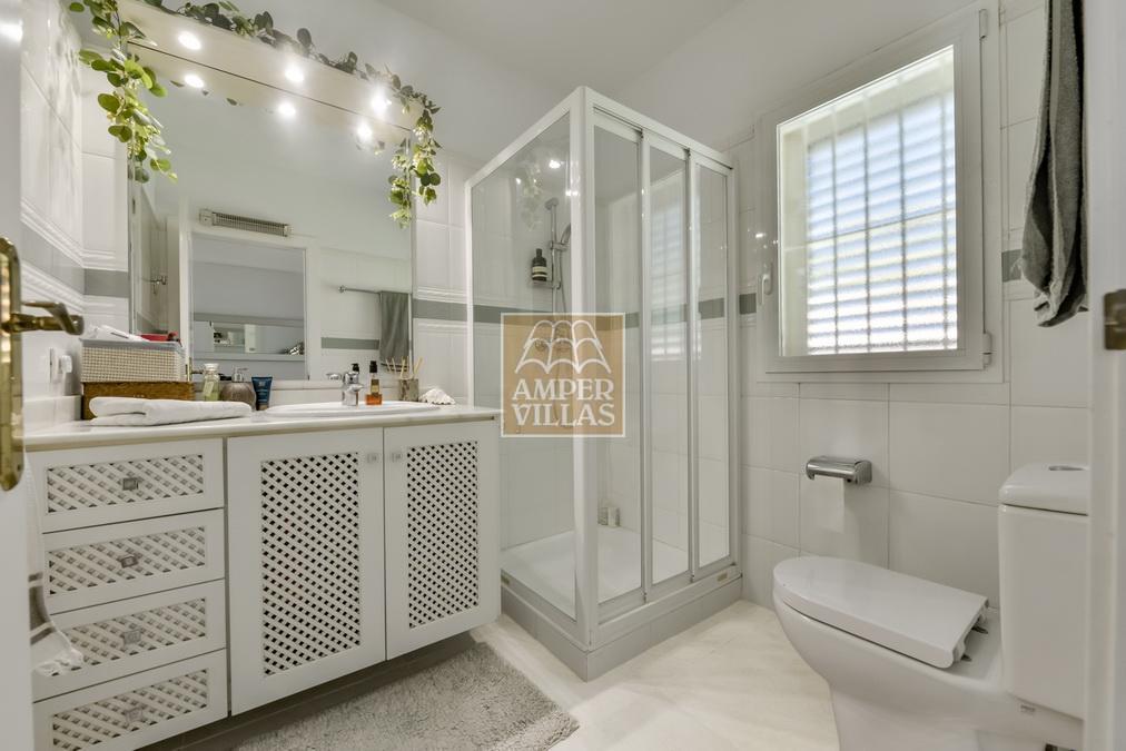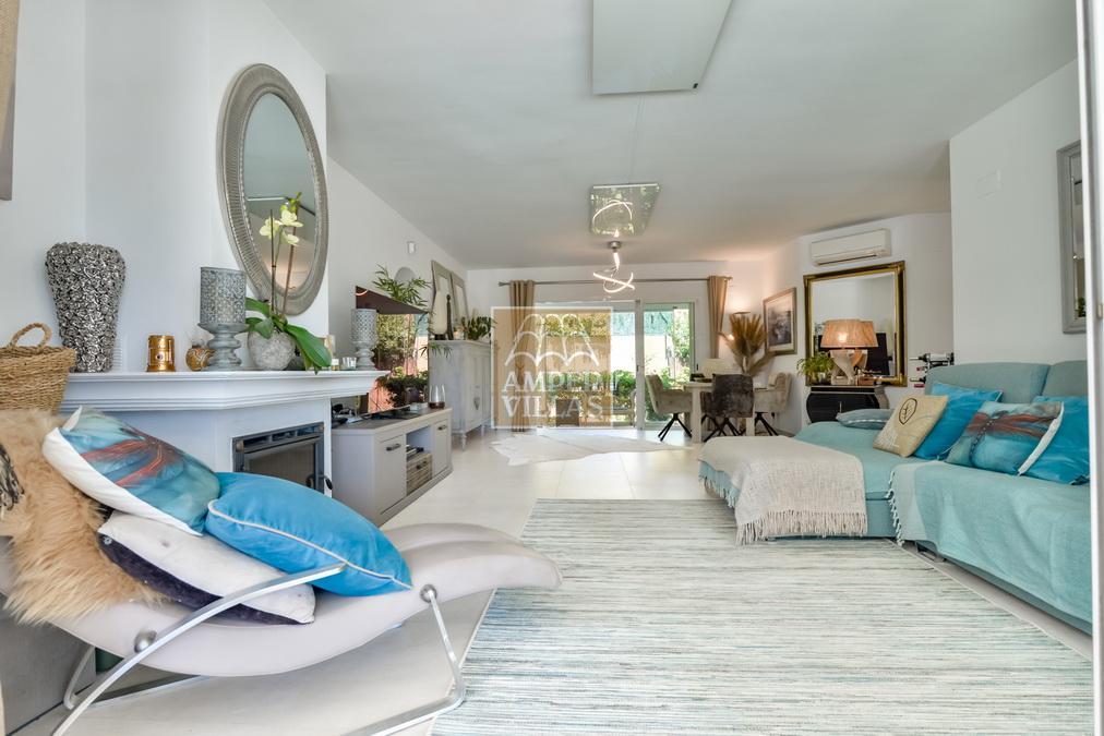 Fantástica villa, en un entorno verde y tranquilo, todo en una planta, gran salón-comedor con chimenea, preciosa cocina independiente, ambos con salida directa a la terraza, 4 dormitorios cada uno con baño en-suite, el principal también con salida directa a la terraza. Terraza acristalada en la parte de delante, con a continuación la piscina rodeada de terrazas abiertas. Otra terraza acristalada en la parte trasera de la casa. Aire acondicionado frio-calor, carport, orientación sur.