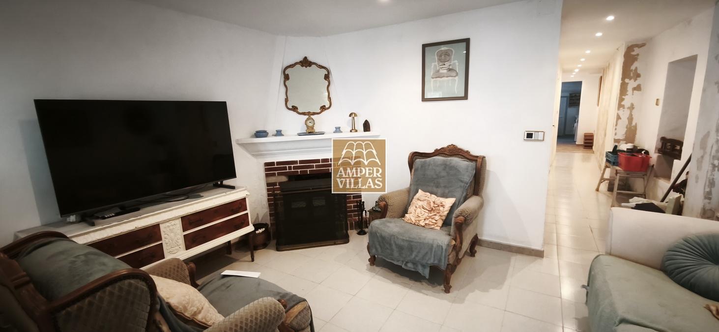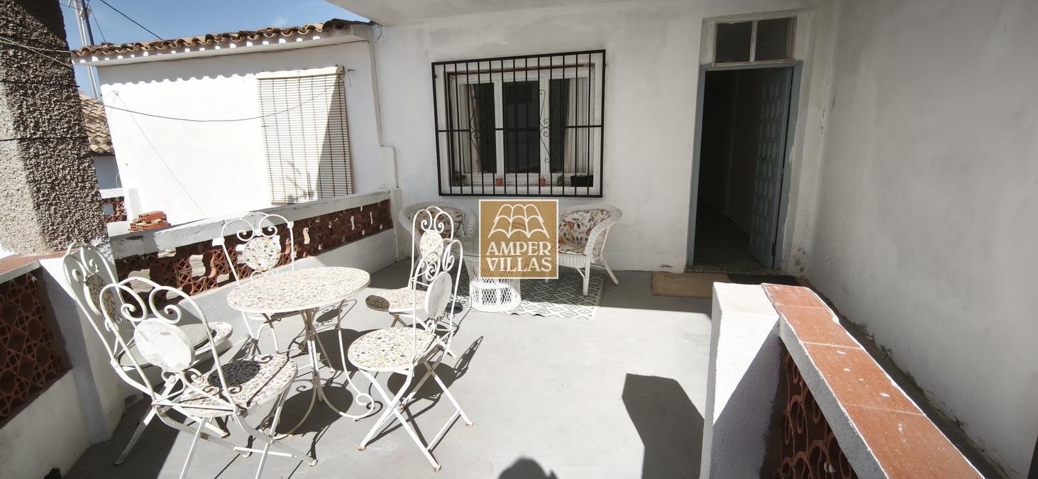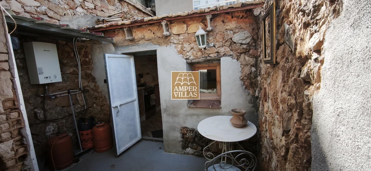 Agradable casa de pueblo con en planta baja: terraza cubierta en la parte de delante, salón con chimenea, cocina independiente, 2 dormitorios, baño con ducha, patio trasero con parte cubierta. En la primera planta, con acceso independiente, hay otra terraza semi-abierta en la entrada, 2 dormitorios, baño con ducha y salita con acceso a terraza en la parte trasera de la casa. Esta en parte renovada, pero hay arreglos por hacer todavía.