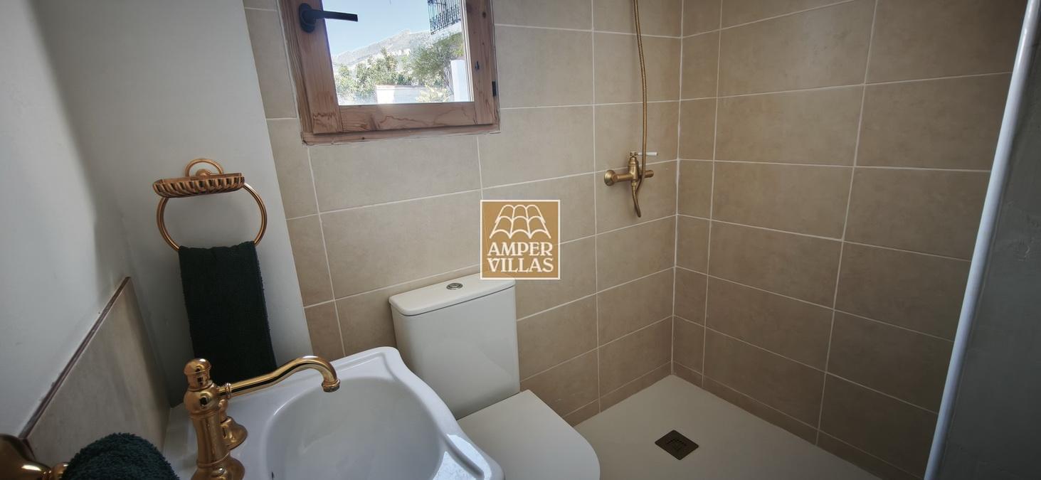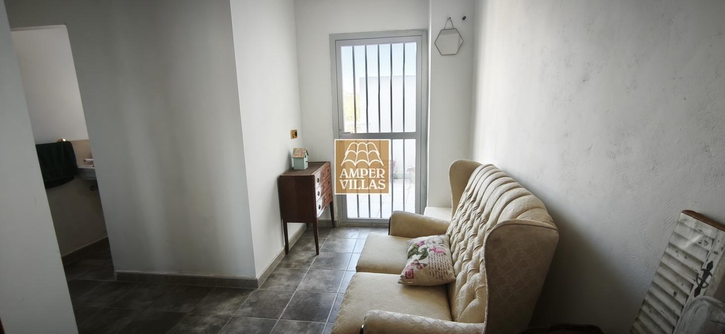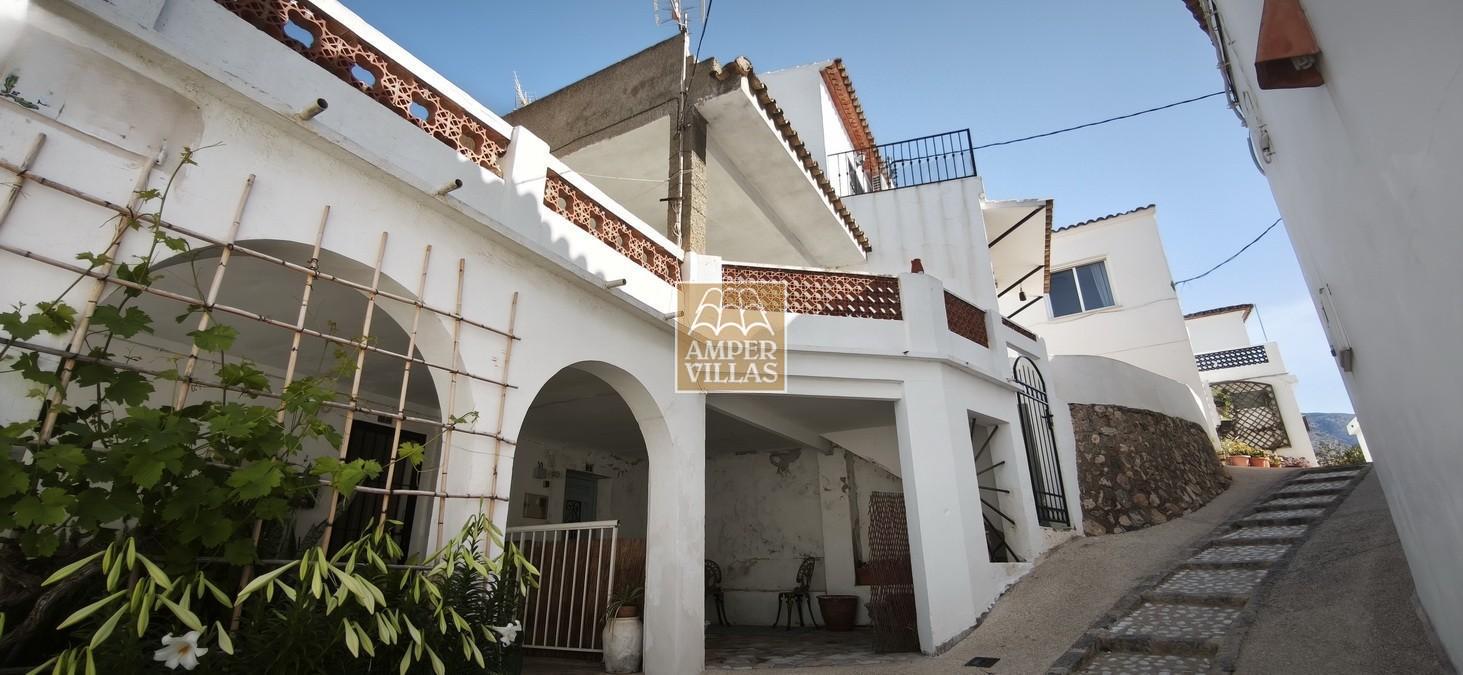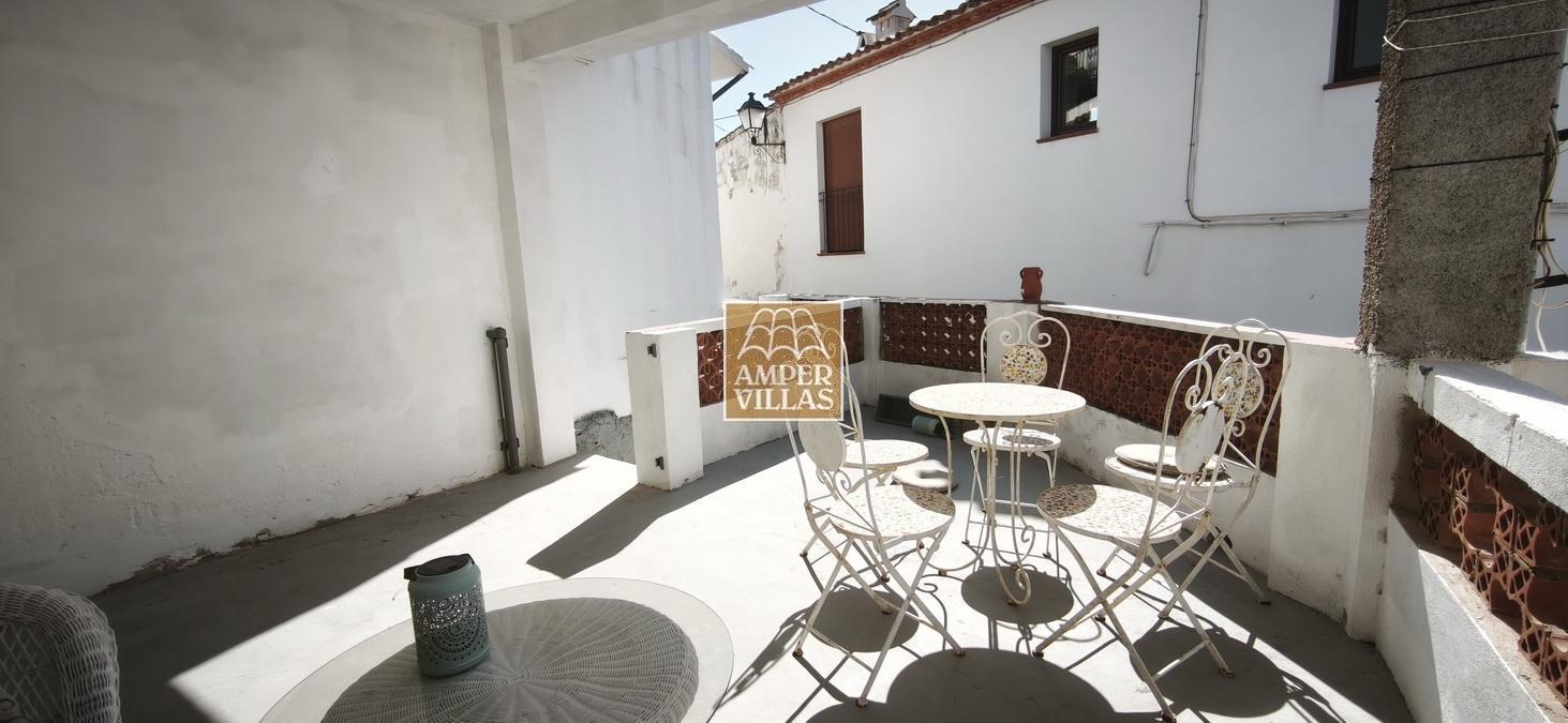Agradable casa de pueblo con en planta baja: terraza cubierta en la parte de delante, salón con chimenea, cocina independiente, 2 dormitorios, baño con ducha, patio trasero con parte cubierta. En la primera planta, con acceso independiente, hay otra terraza semi-abierta en la entrada, 2 dormitorios, baño con ducha y salita con acceso a terraza en la parte trasera de la casa. Esta en parte renovada, pero hay arreglos por hacer todavía.