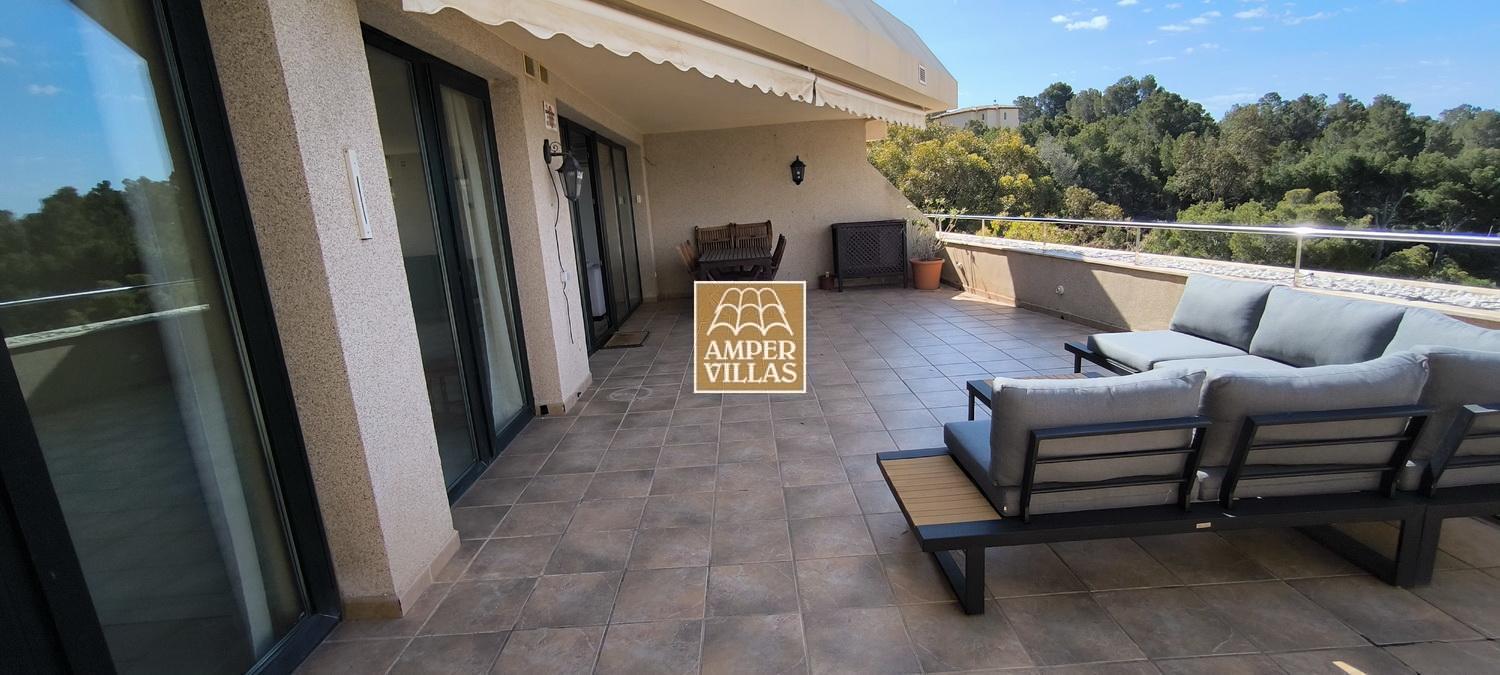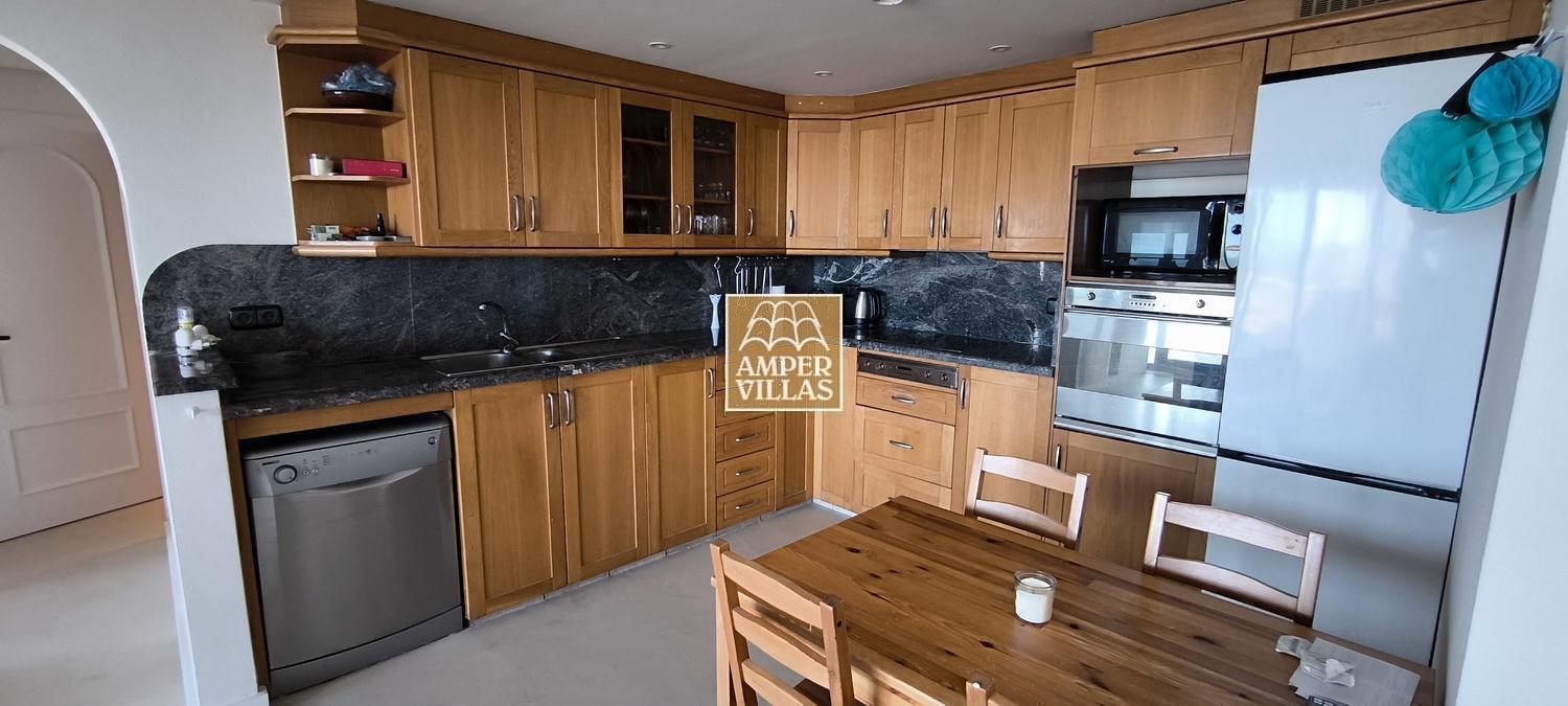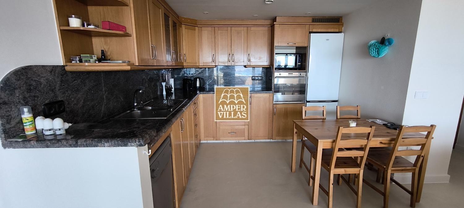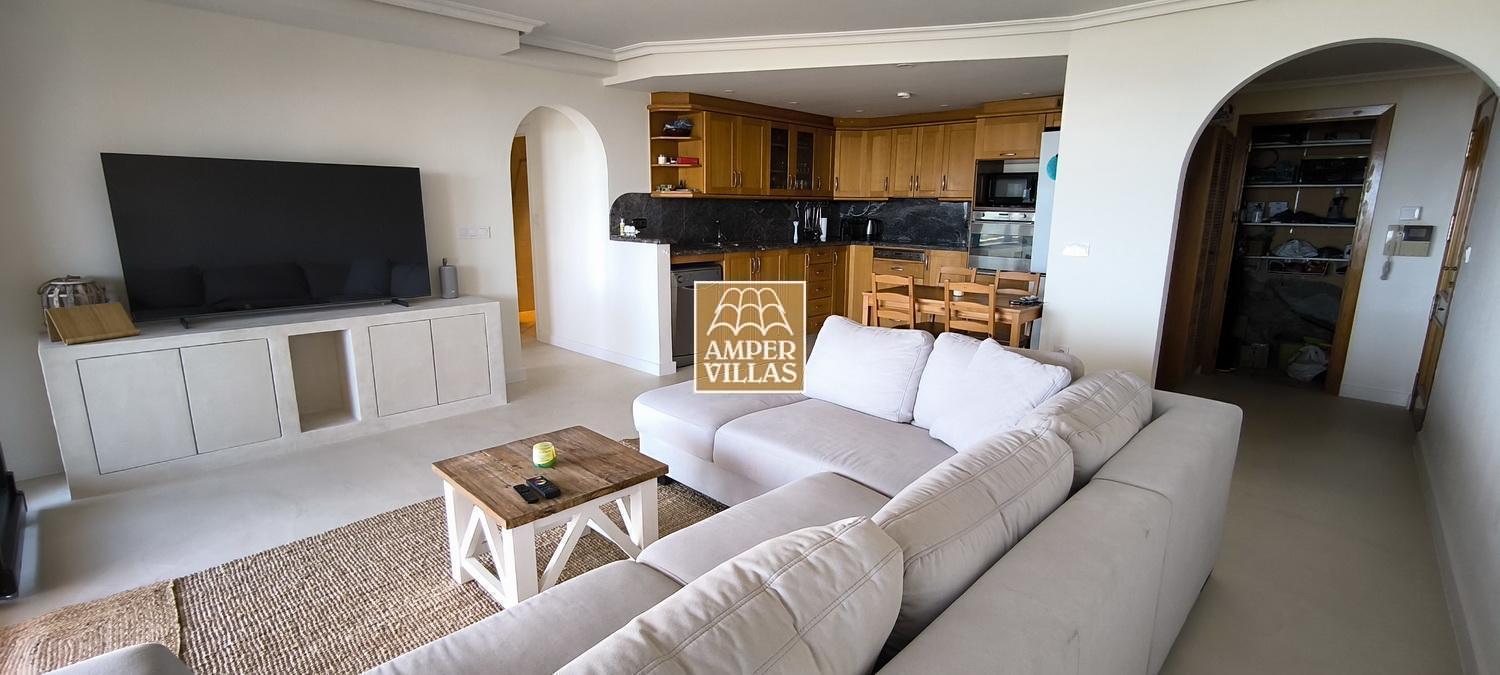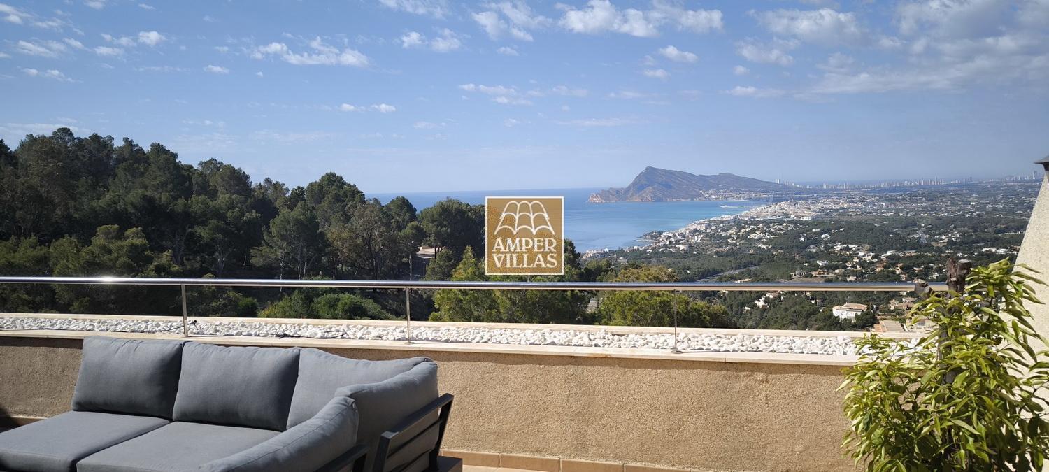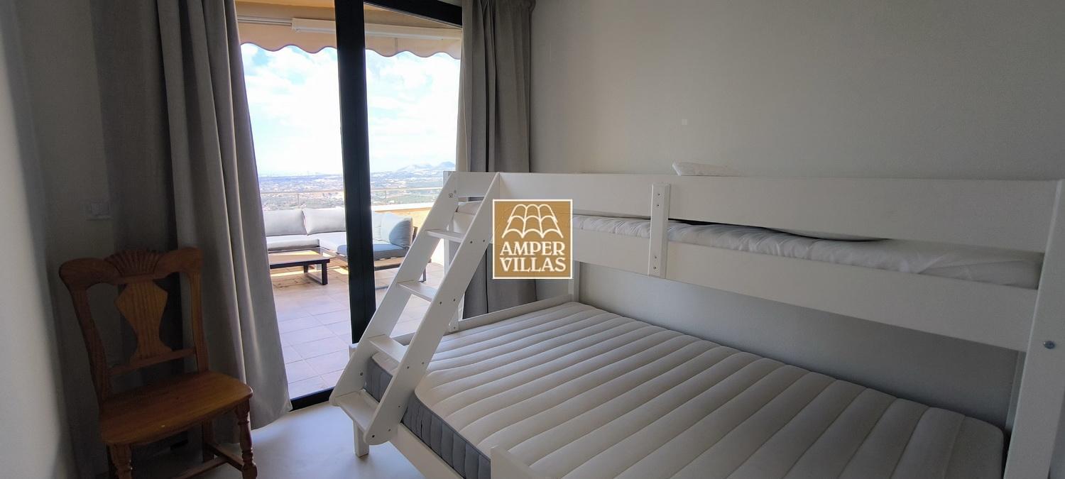 Formidable y soleado apartamento en complejo residencial de lujo, con 2 dormitorios, 2 baños, salón-comedor, amplia cocina americana, gran terraza con vistas panorámicas a la Bahía de Altea, Benidorm y las montañas, plaza de garaje, trastero, aire acondicionado frio/calor, 2 piscinas comunitarias.