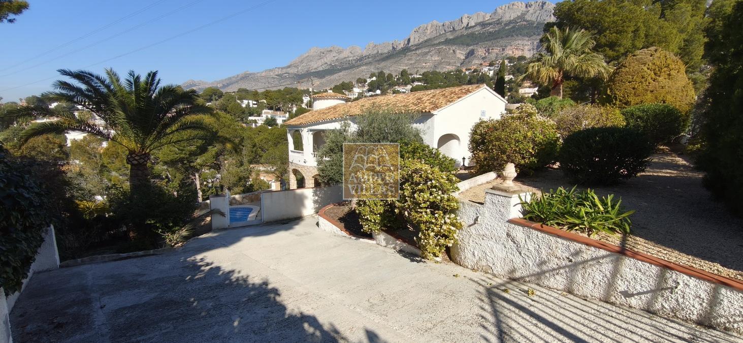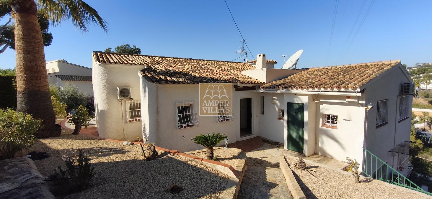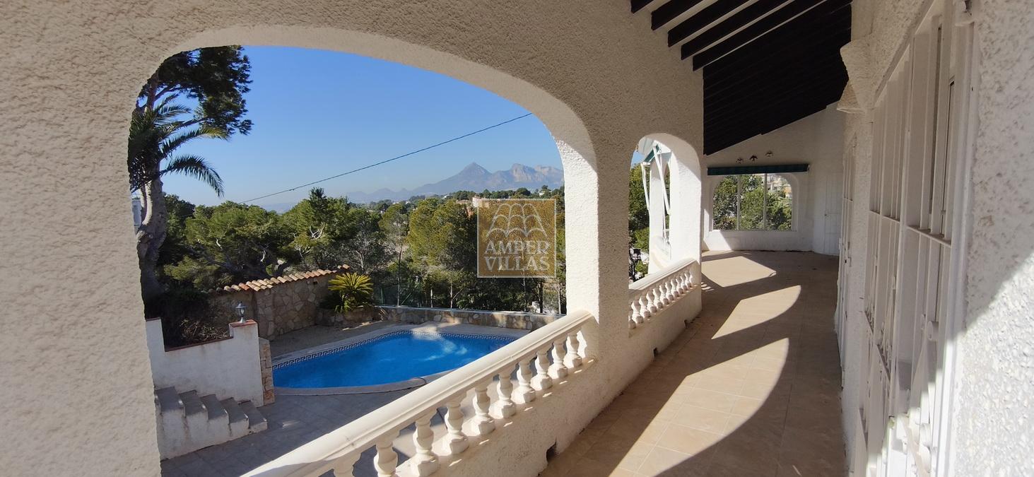 Agradable villa con en la planta principal: entrada, salón, comedor, gran cocina abierta, lavadero, habitación principal con vestidor y baño en-suite, amplia terraza cubierta tipo naya. En la planta inferior, comunicado por una escalera interior, se encuentra otro salón, 3 dormitorios y un baño completo, hay acceso desde esta planta a otra gran terraza cubierta y a la piscina. La casa dispone de calefacción central a gas, aire acondicionado, bonito jardín mediterráneo y vistas despejadas y a la Sierra Bernia.