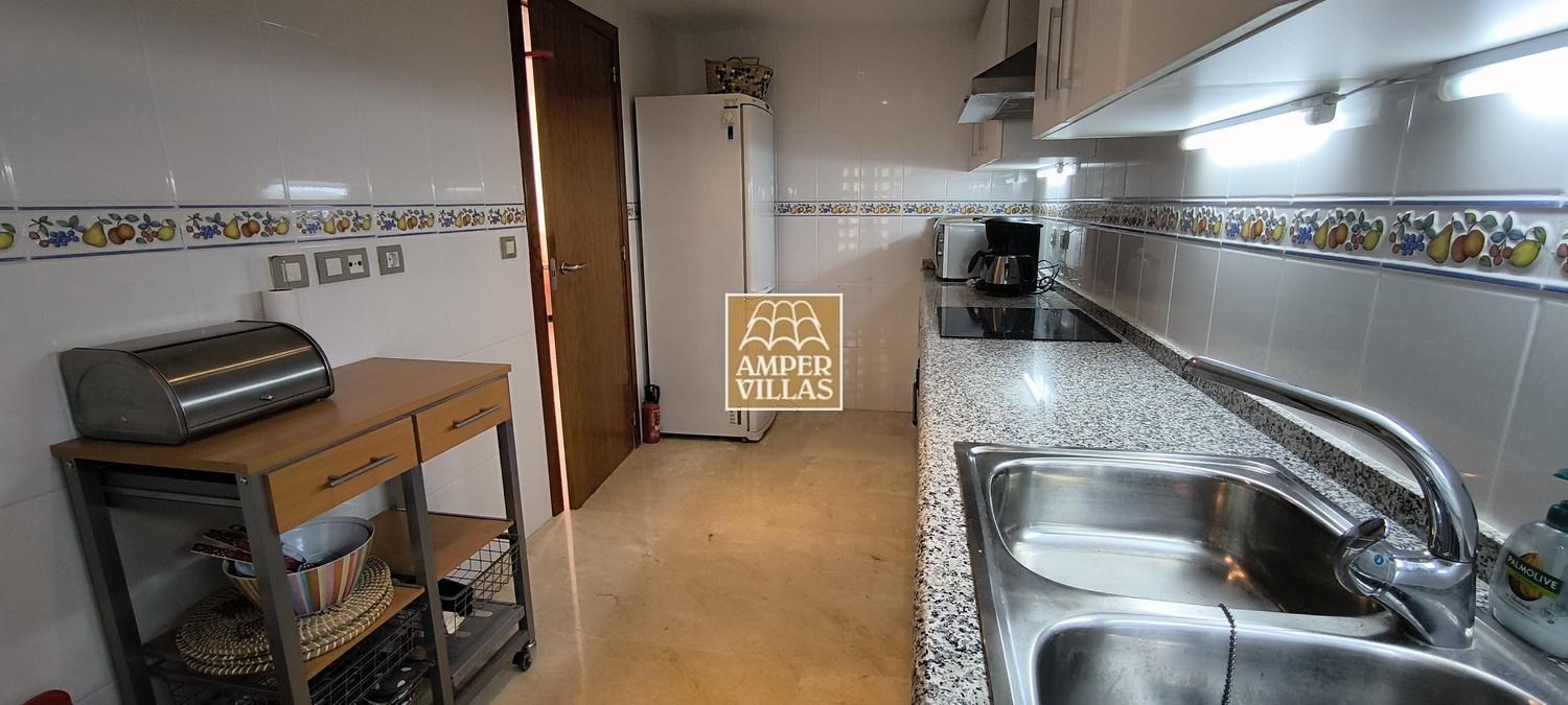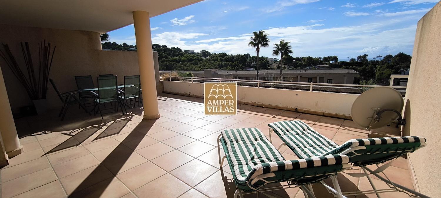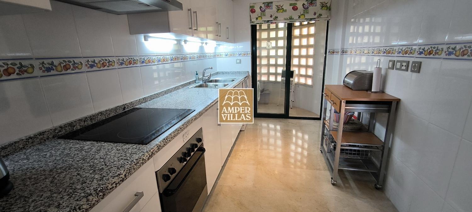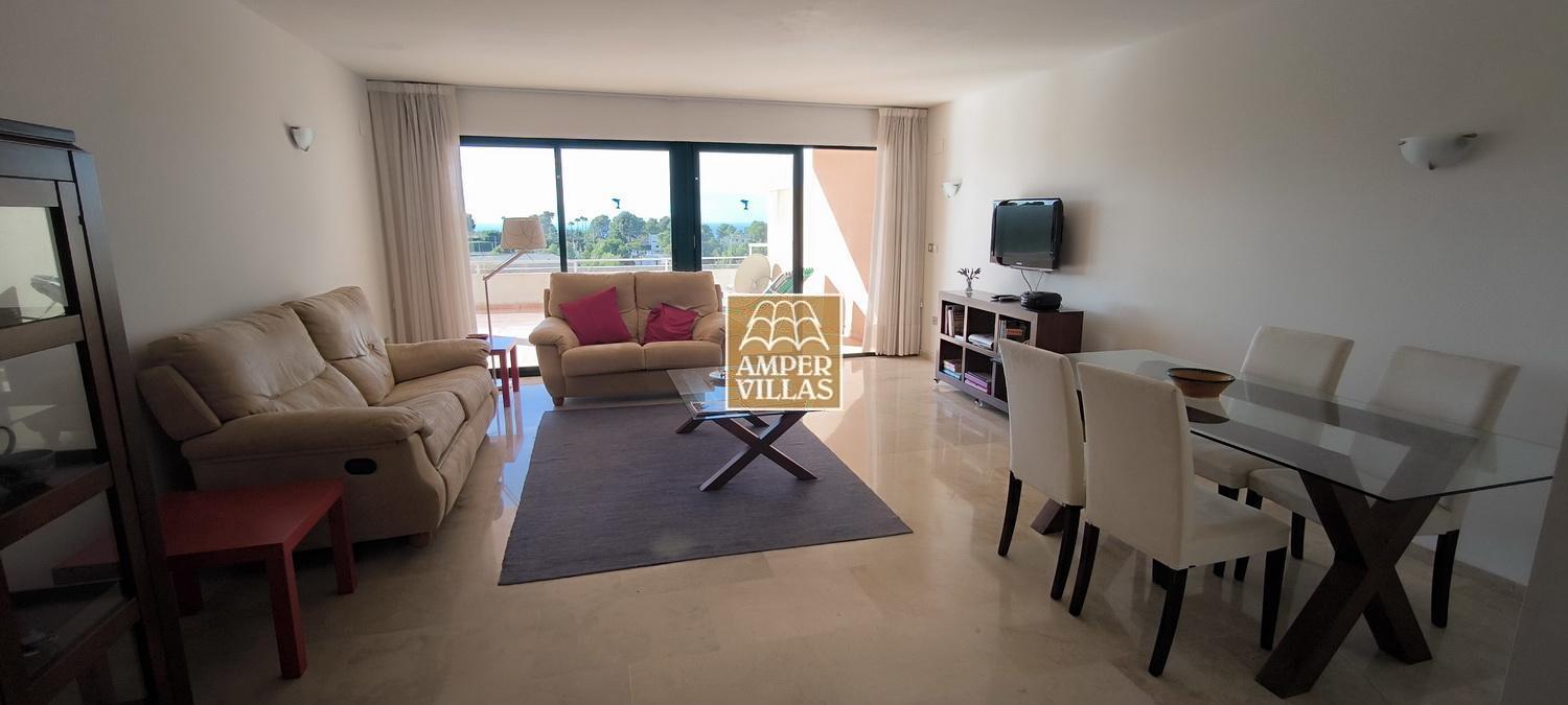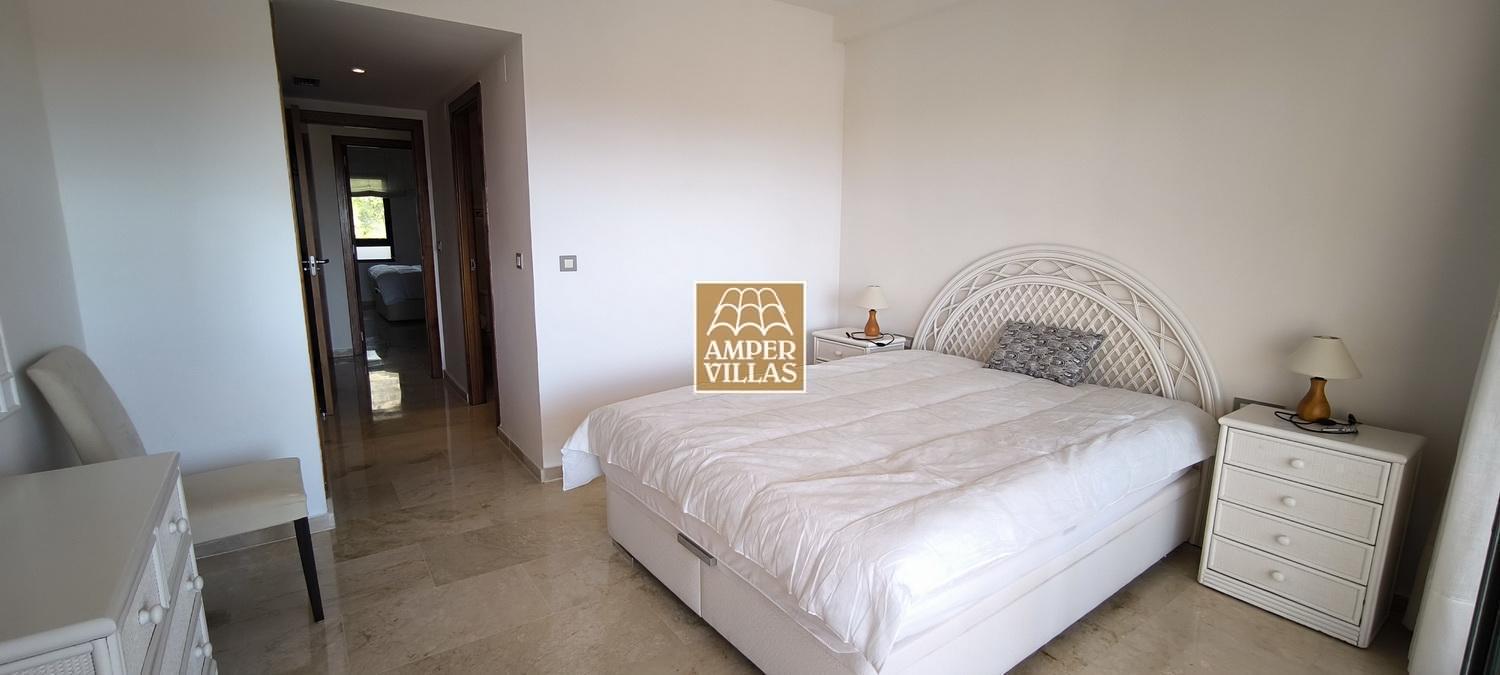 Amplio y acogedor apartamento con 3 dormitorios con armarios empotrados, 2 baños, gran salón-comedor, cocina equipada con lavadero, terraza de 40m² con vistas al mar, y las montañas, suelos de mármol, aire acondicionado frío/calor, garaje cerrado, residencial con 2 piscinas y bonitos jardines comunitarios.