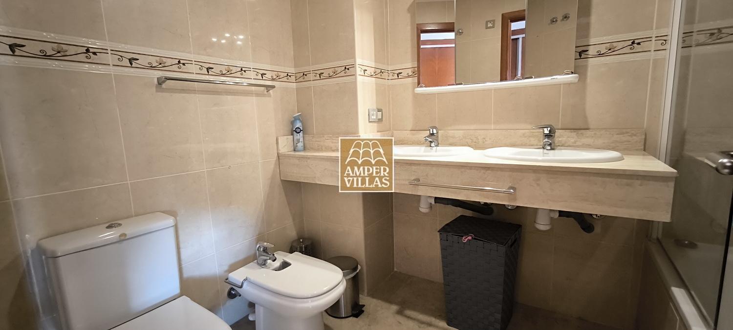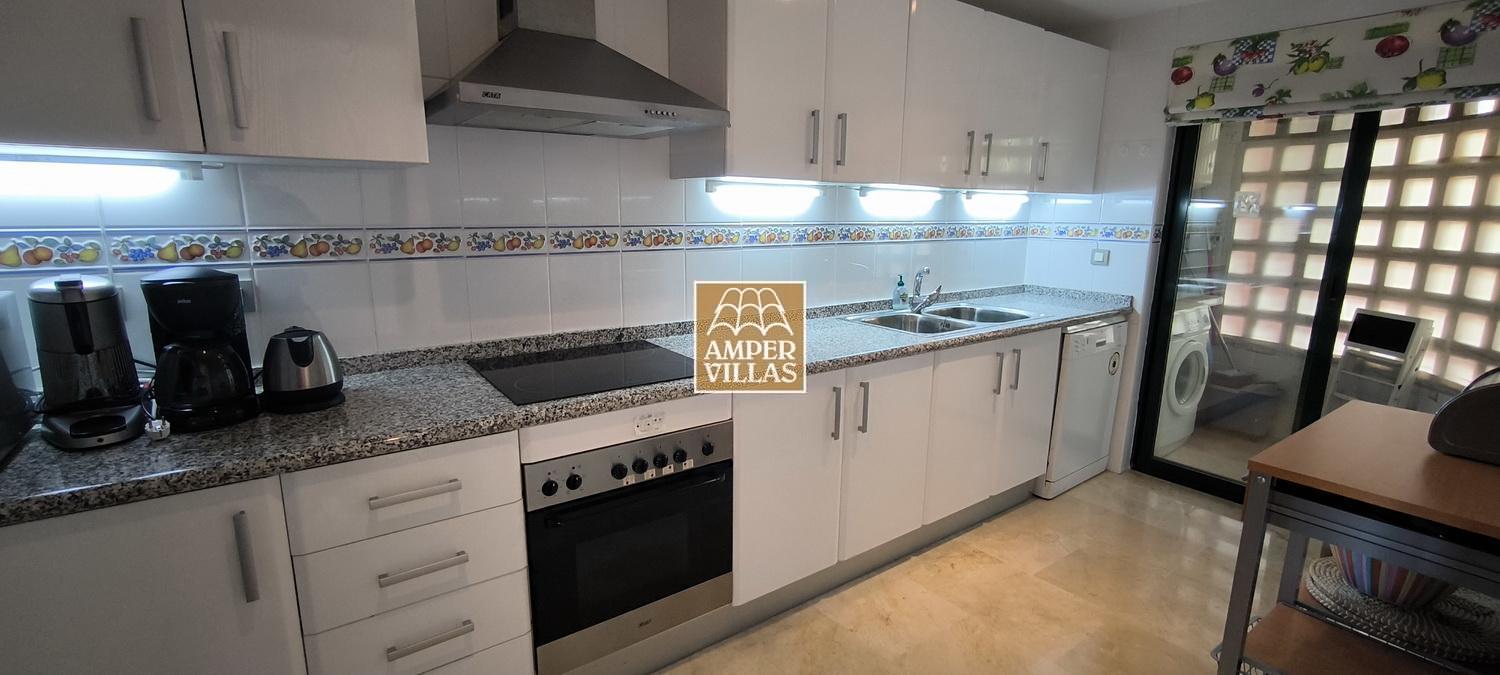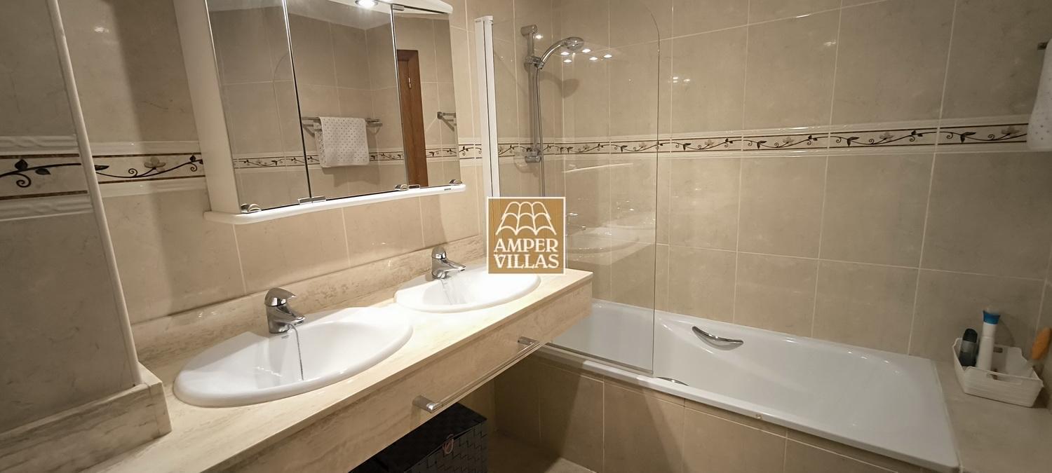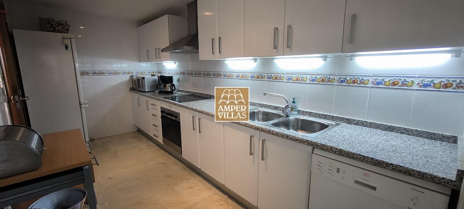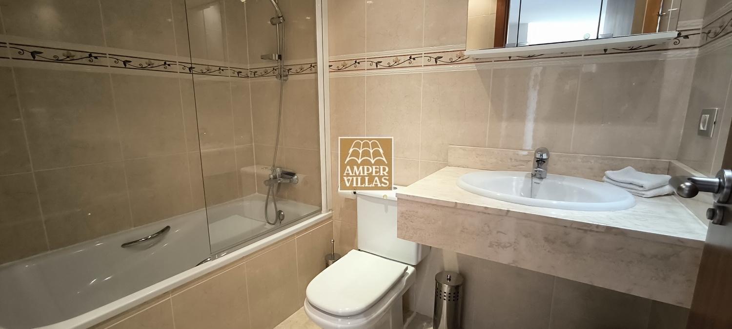 Amplio y acogedor apartamento con 3 dormitorios con armarios empotrados, 2 baños, gran salón-comedor, cocina equipada con lavadero, terraza de 40m² con vistas al mar, y las montañas, suelos de mármol, aire acondicionado frío/calor, garaje cerrado, residencial con 2 piscinas y bonitos jardines comunitarios.