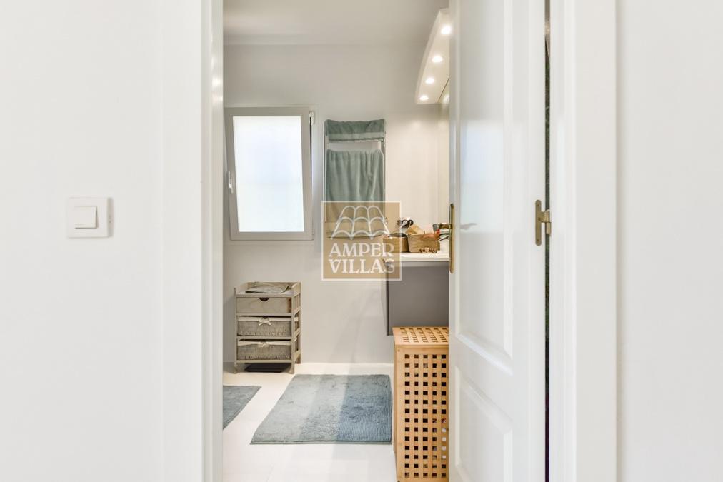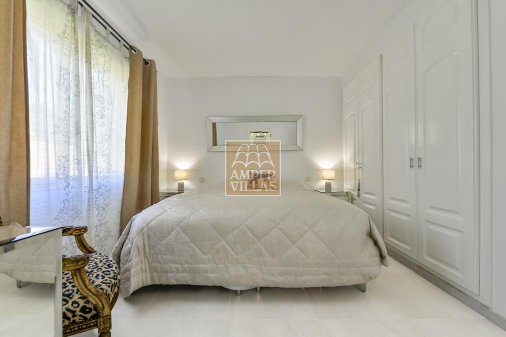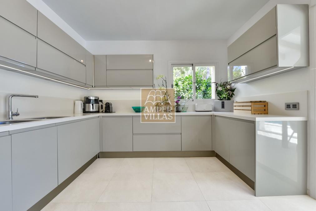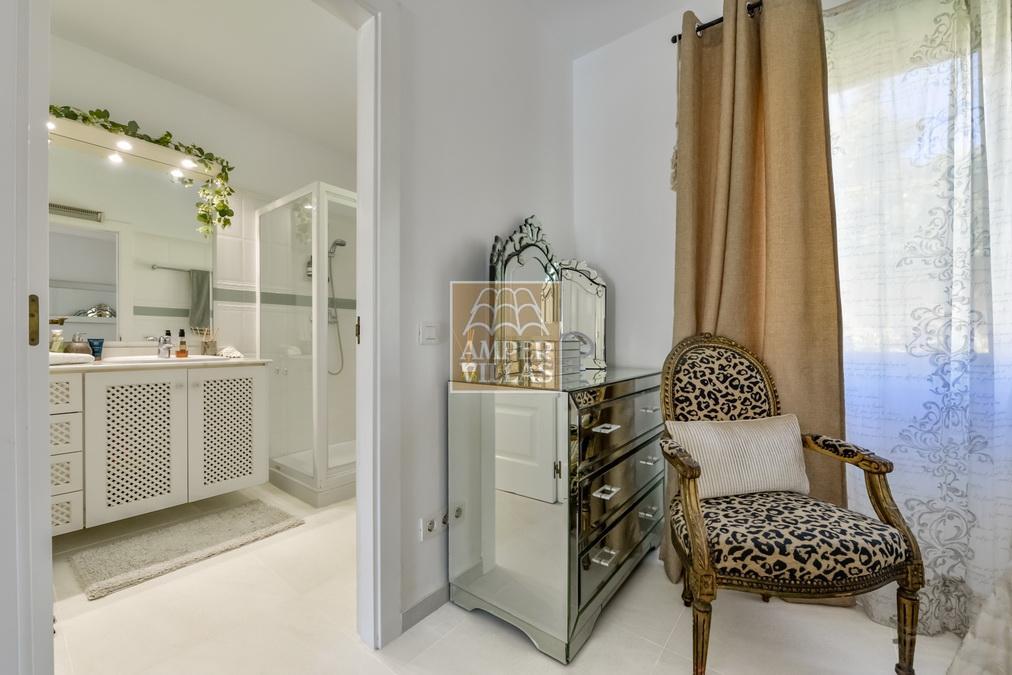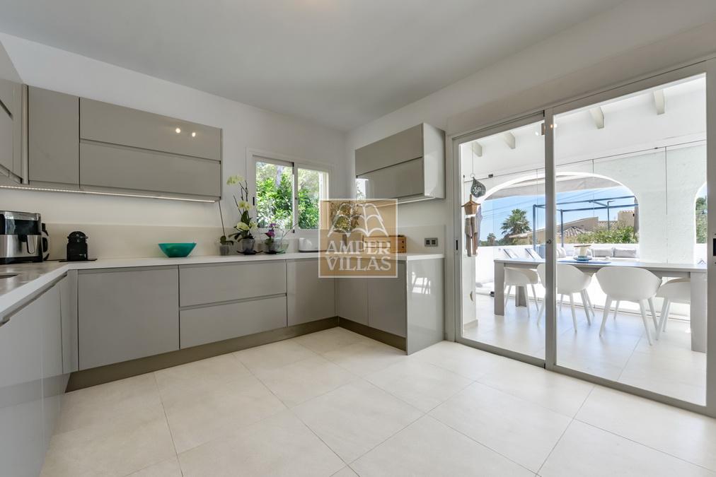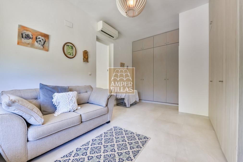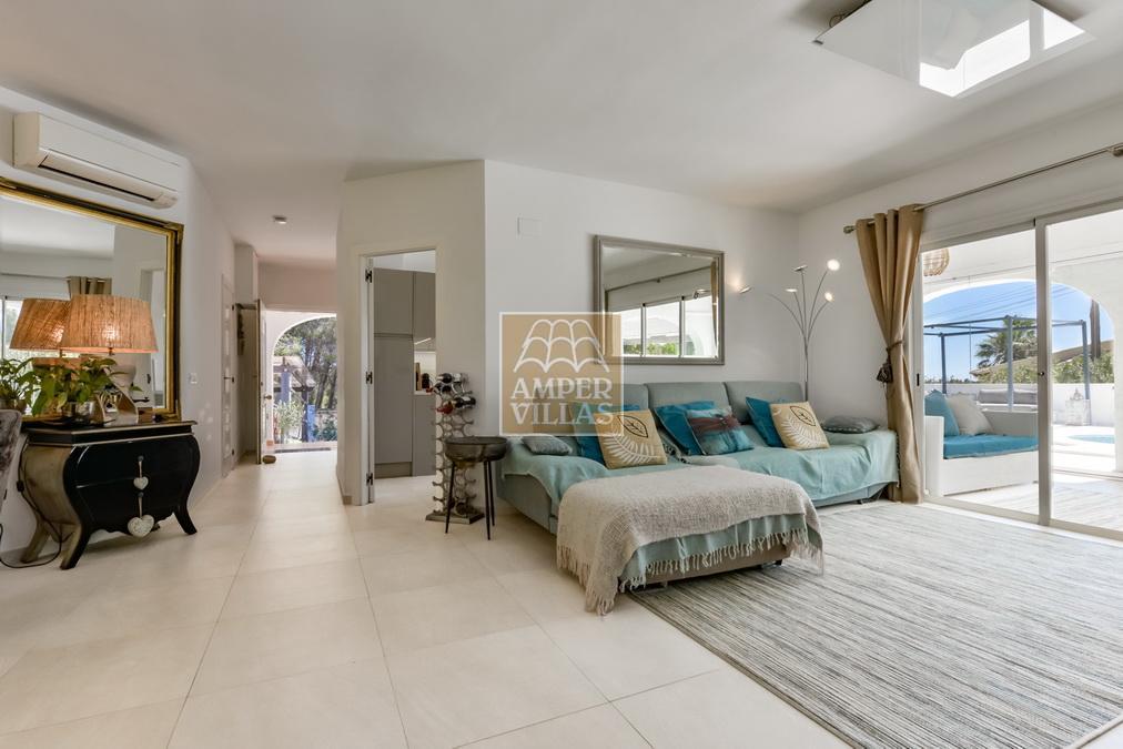 Fantástica villa, en un entorno verde y tranquilo, todo en una planta, gran salón-comedor con chimenea, preciosa cocina independiente, ambos con salida directa a la terraza, 4 dormitorios cada uno con baño en-suite, el principal también con salida directa a la terraza. Terraza acristalada en la parte de delante, con a continuación la piscina rodeada de terrazas abiertas. Otra terraza acristalada en la parte trasera de la casa. Aire acondicionado frio-calor, carport, orientación sur.