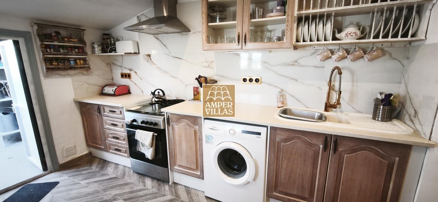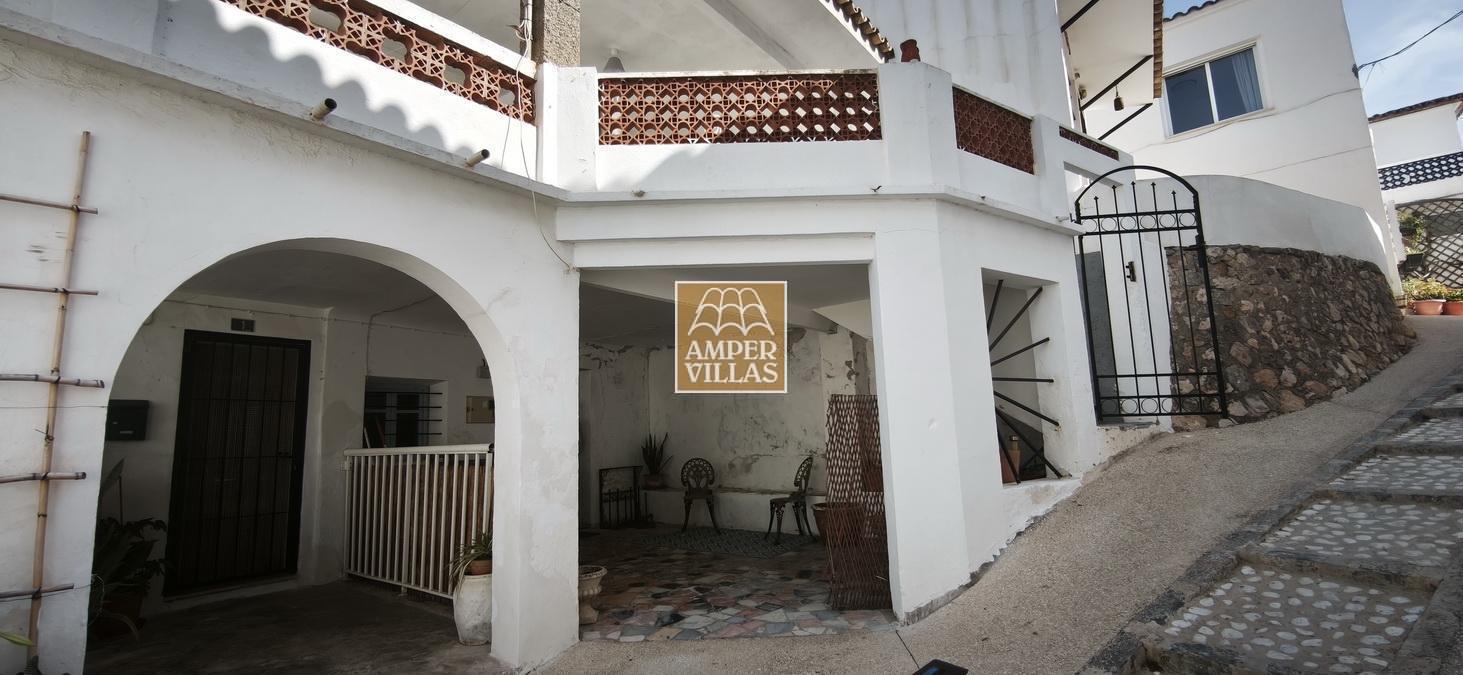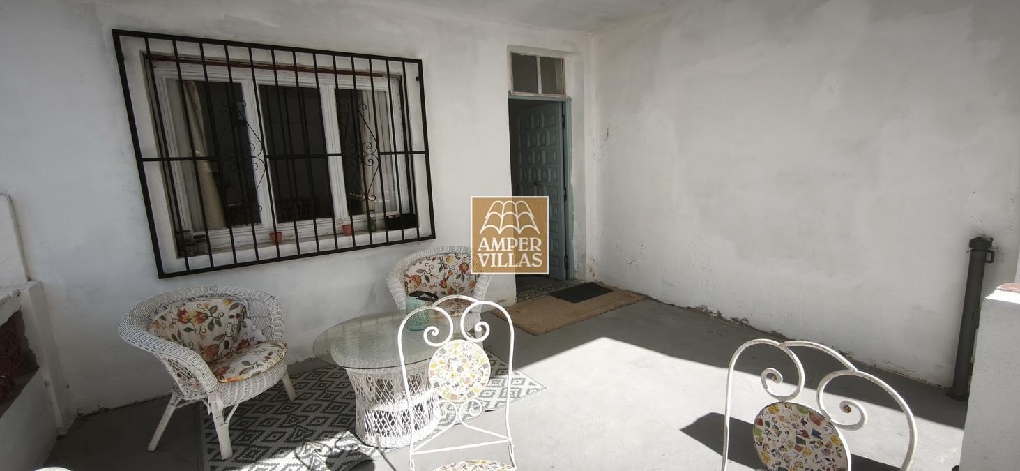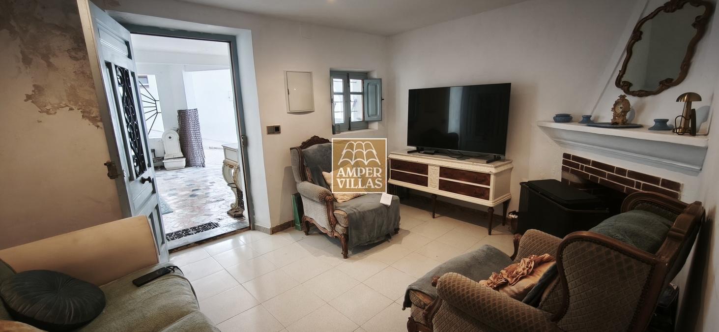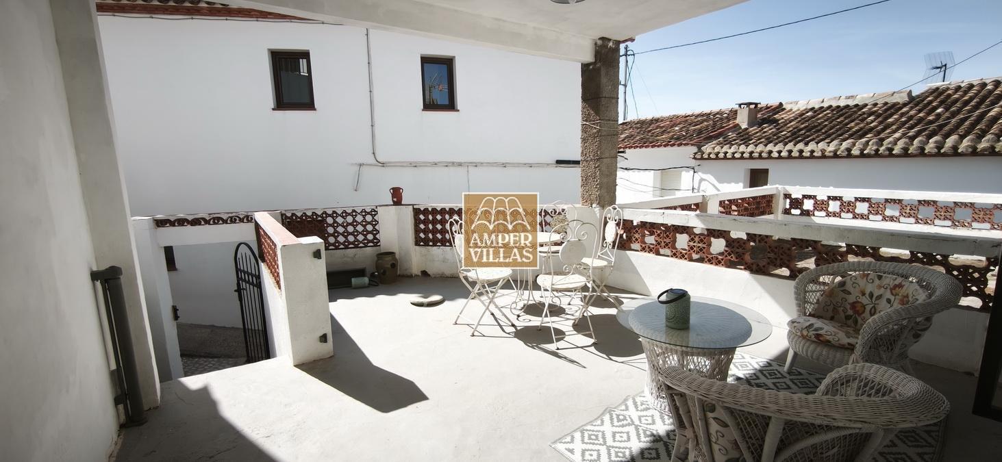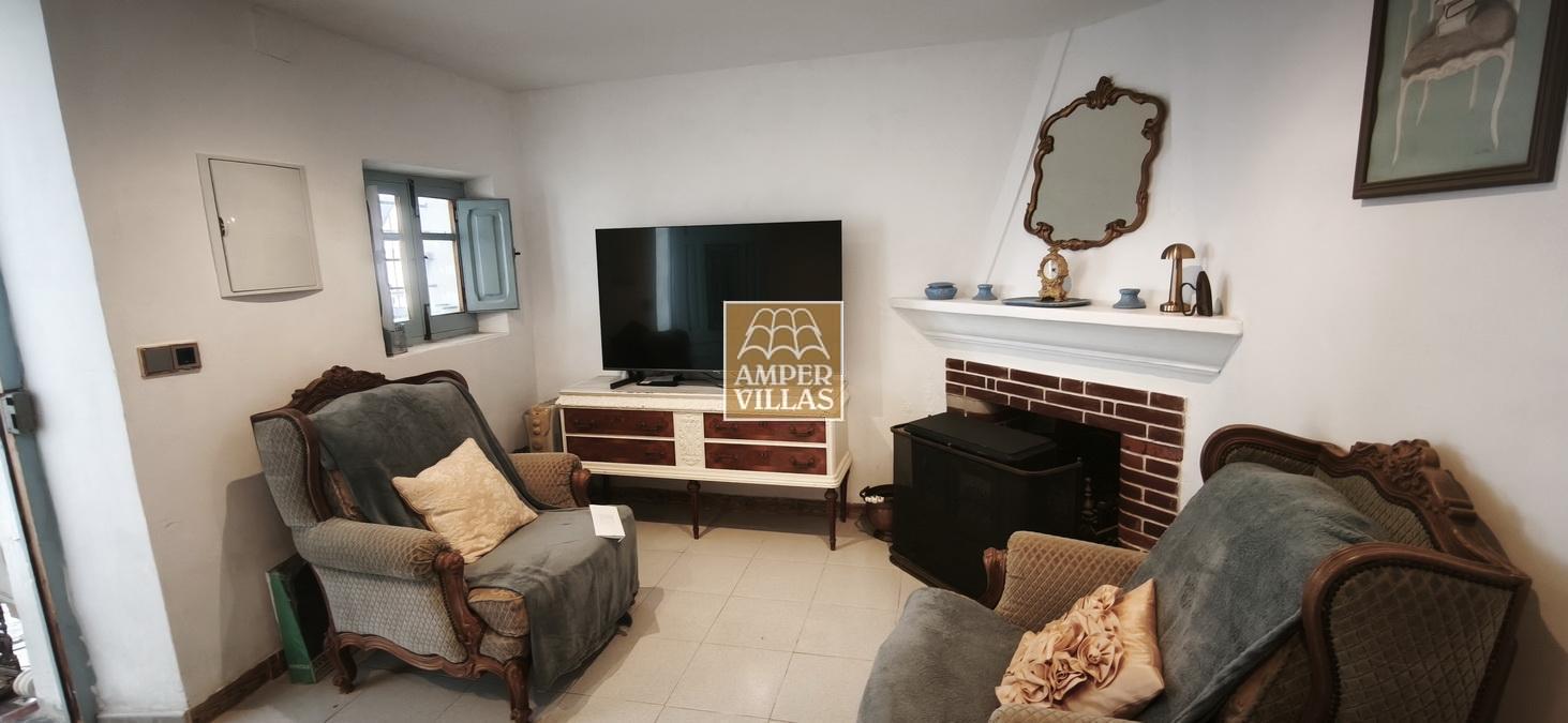 Agradable casa de pueblo con en planta baja: terraza cubierta en la parte de delante, salón con chimenea, cocina independiente, 2 dormitorios, baño con ducha, patio trasero con parte cubierta. En la primera planta, con acceso independiente, hay otra terraza semi-abierta en la entrada, 2 dormitorios, baño con ducha y salita con acceso a terraza en la parte trasera de la casa. Esta en parte renovada, pero hay arreglos por hacer todavía.